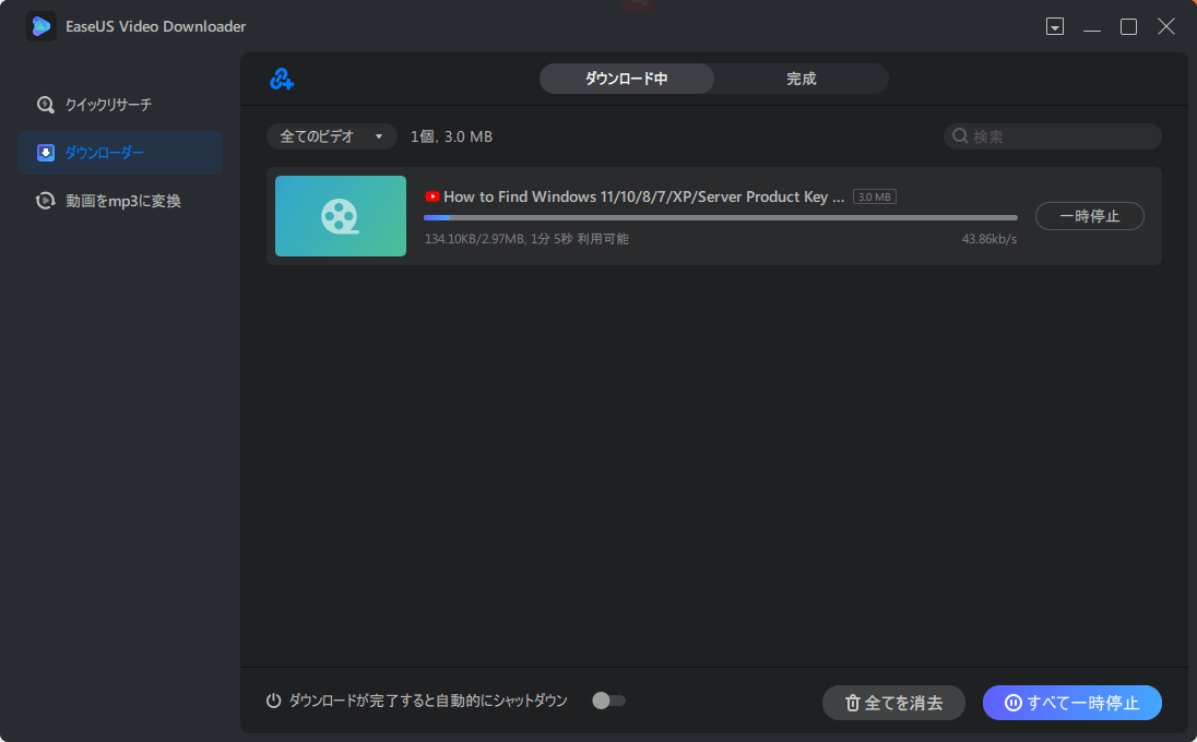 EaseUS Video Downloader は、オンラインビデオからオーディオを抜け出すことができます。まずはビデオをダウンロードして、そしてビデオからオーディオファルを抜け出して、 MP3ファイルに変換します。さらに、320kbps、256kbps、128kbpsなどのオーディオ品質が提供されます。