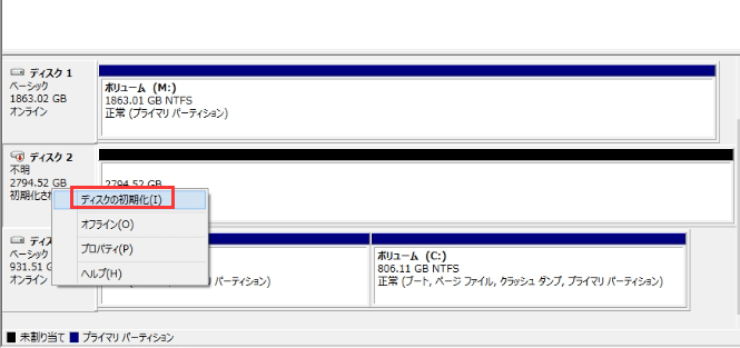 ステップ2.「未割り当て」とマークされたハードディスクを右クリックし、「ディスクの初期化」オプションをクリックします。
