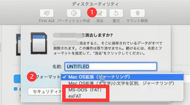 ステップ4. ディスク名とフォーマットを変更します。「消去」ボタンをクリックします。