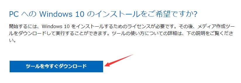 ステップ2.Windows 10インストールメディアの作成で、「今すぐツールをダウンロード」をクリックし、ダウンロード後にメディアファイルを実行します。