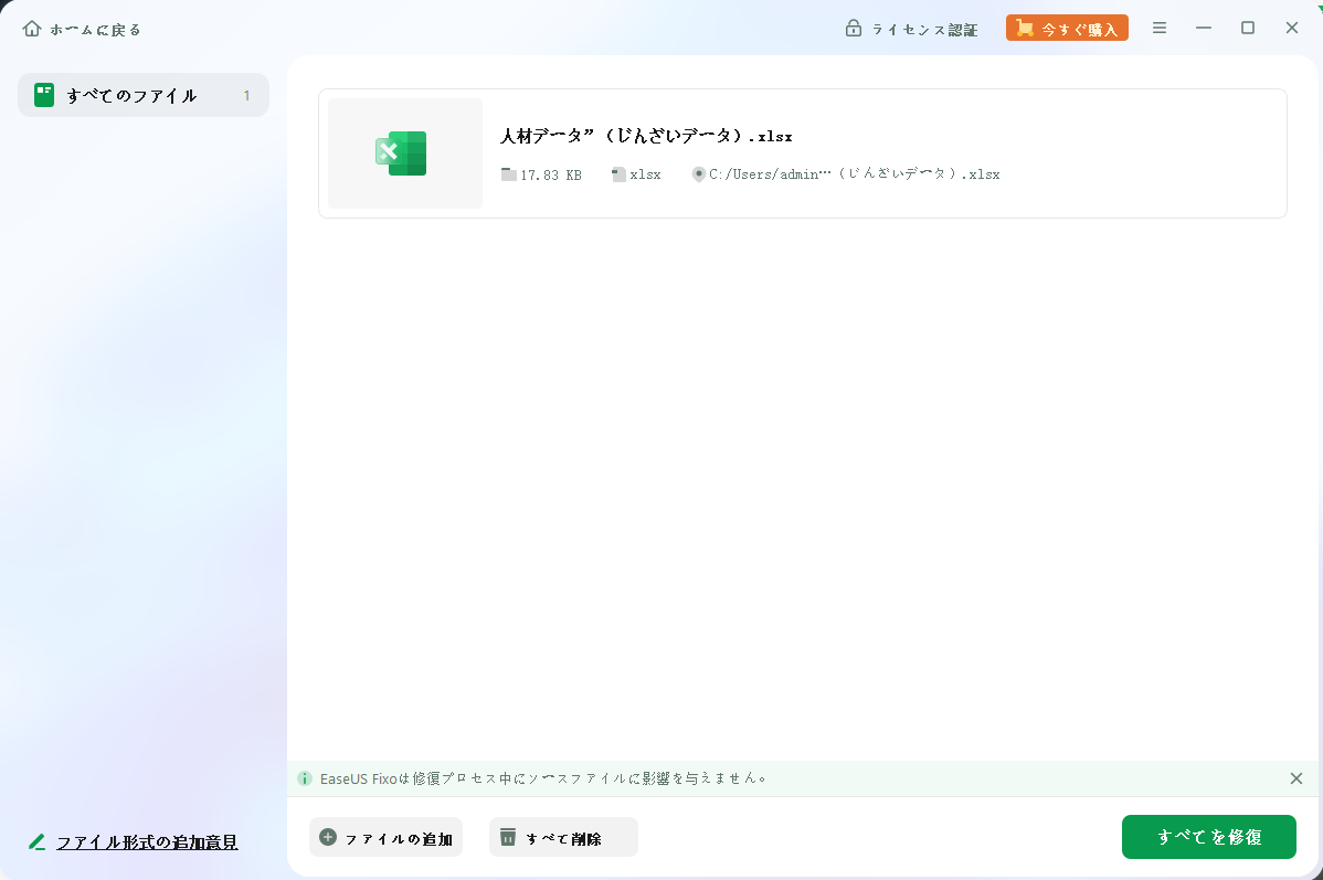 Fixoのアルゴリズムにより、数秒でファイルを正常に修復することができます。