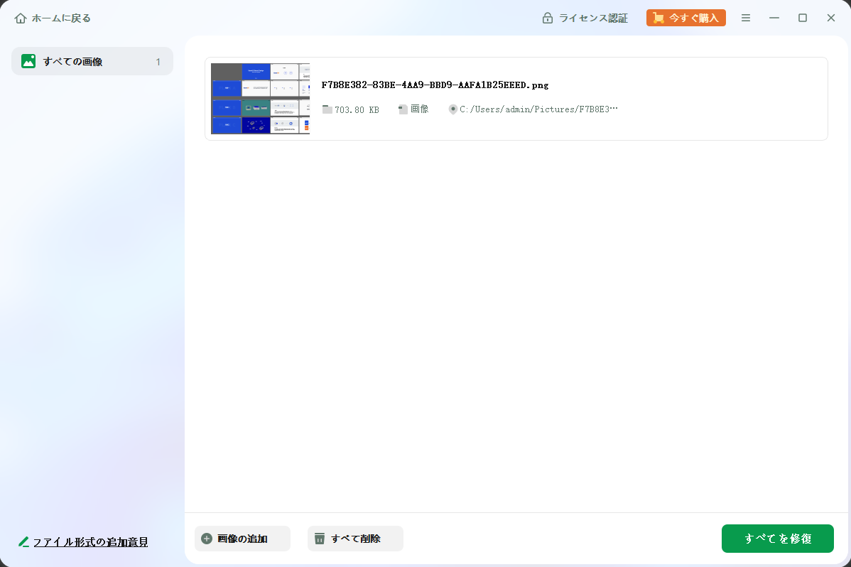 クリックして「修復」ボタンを押し、損傷したビデオ、写真、またはファイルを一括で修復します。