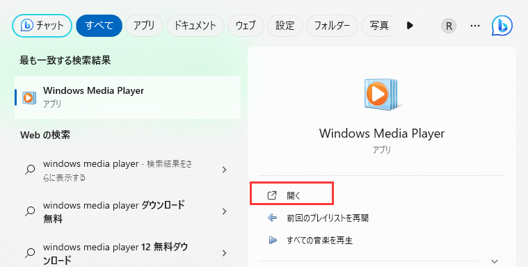ステップ1. Windowsの検索ボックスに「Windows Media Player」と入力し、Enterキーを押します。
