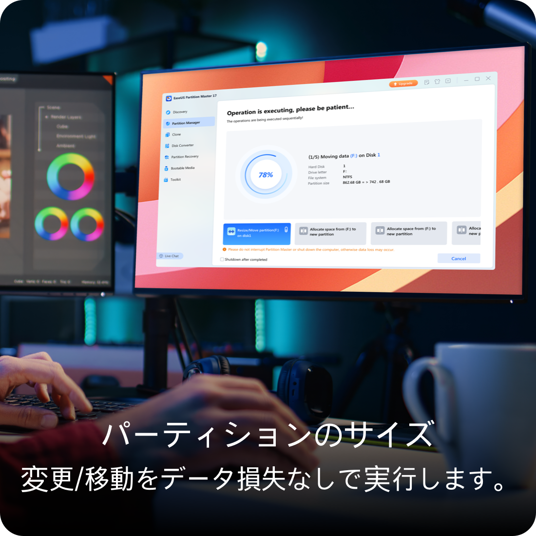 EaseUS Partition Masterは、ディスクのパフォーマンスを効率的に向上させるための包括的なディスクパーティション機能を提供します。