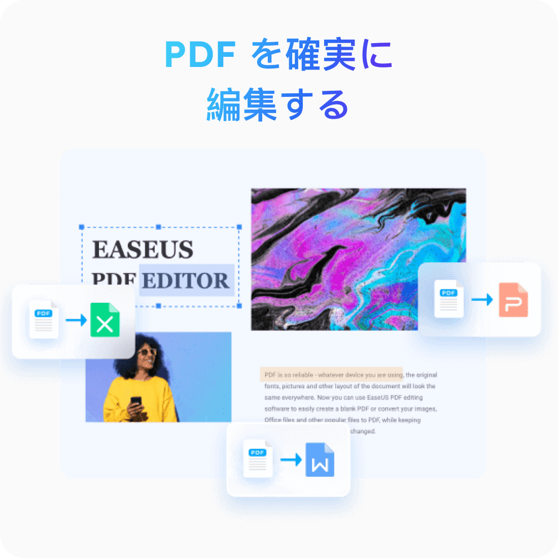 EaseUS PDF Editorは、PDFファイルの閲覧、編集、変換、作成、結合、分割、圧縮が可能なオールインワンでありながら使いやすいPDFソリューションです。無料でダウンロードできます。