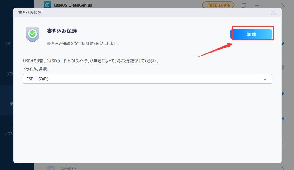 ステップ2:書き込み保護されているデバイスを選択し、「無効」をクリックして保護を解除します。