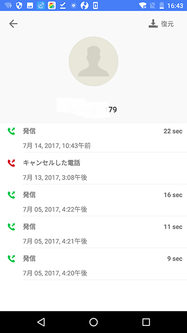 ステップ 4. 検出された通話履歴を選んでから、復元をクリックして保存してください。復元が完了した後、デバイス上の通話履歴リストに閲覧することができます。