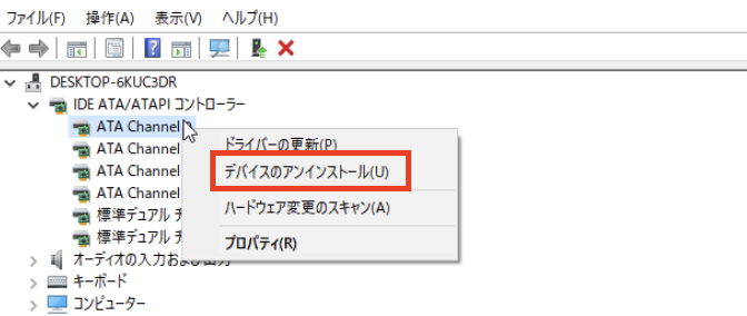 ステップ1.DVD/CD-ROMドライブとIDE ATA/ATAPIコントローラの項目を見つけます。[DVD/CD-ROM ドライブ]セクションと[IDE ATA/ATAPI コントローラー]セクションの下にある各エントリを 1 つずつ右クリックし、[デバイスのアンインストール]を選択します。