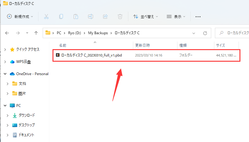 ステップ4.イメージファイルのパスにしたがって、pbdファイルを確認できます。